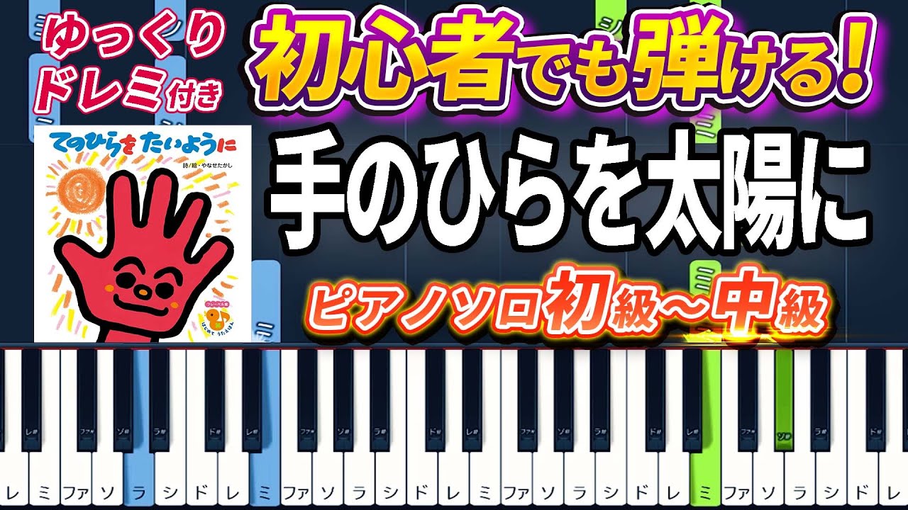 タイトル | 【ピアノ楽譜】手のひらを太陽に/童謡(ピアノソロ初級~中級・初心者向け)【ピアノアレンジ楽譜】/簡単/ゆっくり演奏付き |