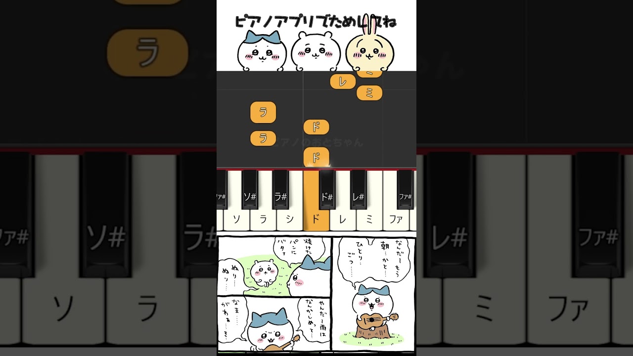 タイトル【ピアノ】ひとりごつ/ハチワレ ★だれでも弾ける!【ちいかわ】 #shorts #piano #ピアノ簡単 #ピアノ楽譜