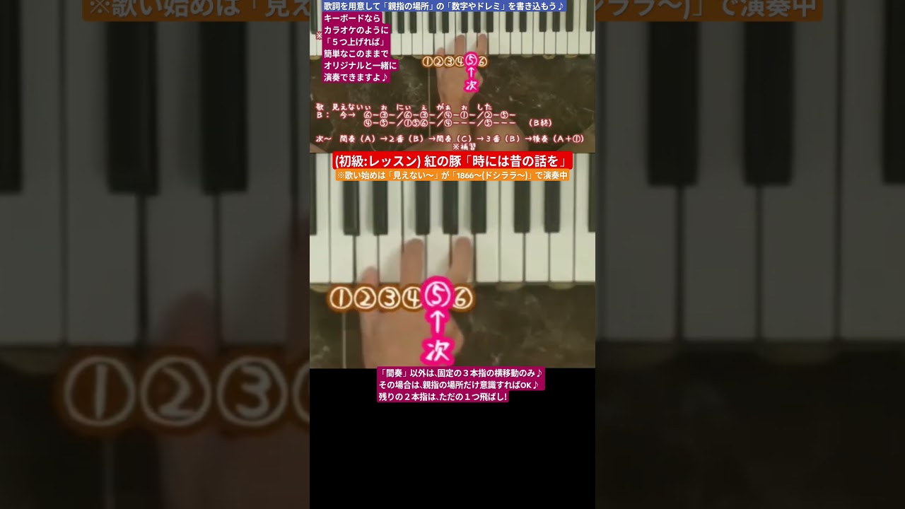 | タイトル | (初級:レッスン) 紅の豚「時には昔の話を」を簡単に片手で #弾き語り #ピアノ |